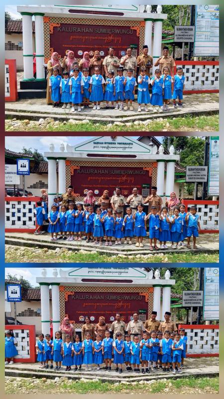 Para murid datang didampingi oleh guru dan orang tua, disambut hangat oleh Kamituwa Sumberwungu dan Pamong Kalaurahan lainnya. Dengan penuh semangat, anak-anak diajak berkeliling mengenal berbagai ruangan seperti balai kalurahan, ruang pelayanan umum, ruang kerja Lurah, ruang Bamuskal, ruang kerja pamong, ruang lembaga kalurahan, perpustakaan desa dan bagian-bagian kantor lainnya.