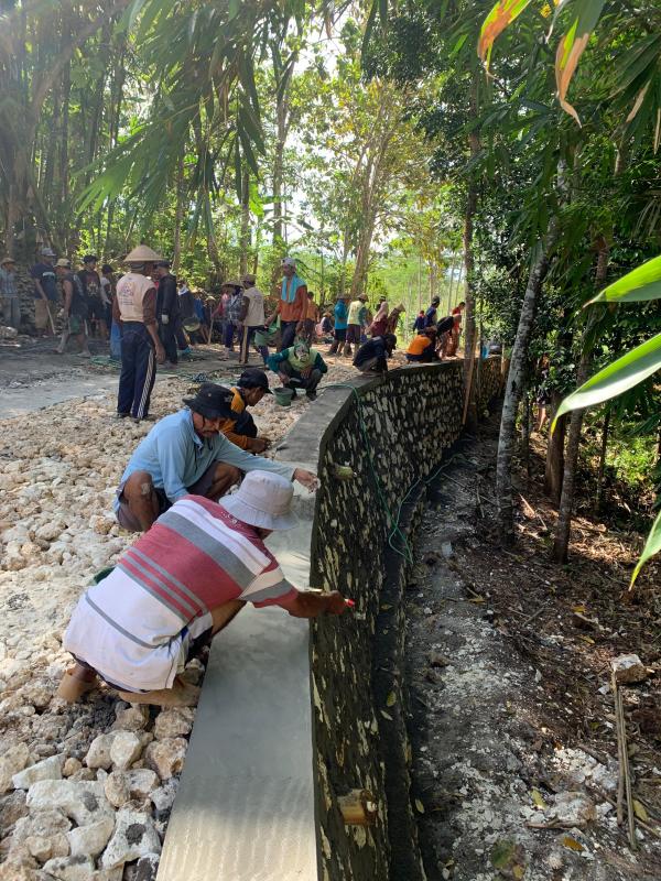 Selama pelaksanaan, warga bekerja secara bersama-sama satu padukuhan dan juga dibantu oleh Bhabinkamtibmas, Babinsa, Pamong Kalurahan dan Anggota Bamuskal. Selain itu Kapolsek Tepus dan Panewu Tepus juga turut kerja bakti dalam kegiatan gotong royong pembangunan talud jalan ini.